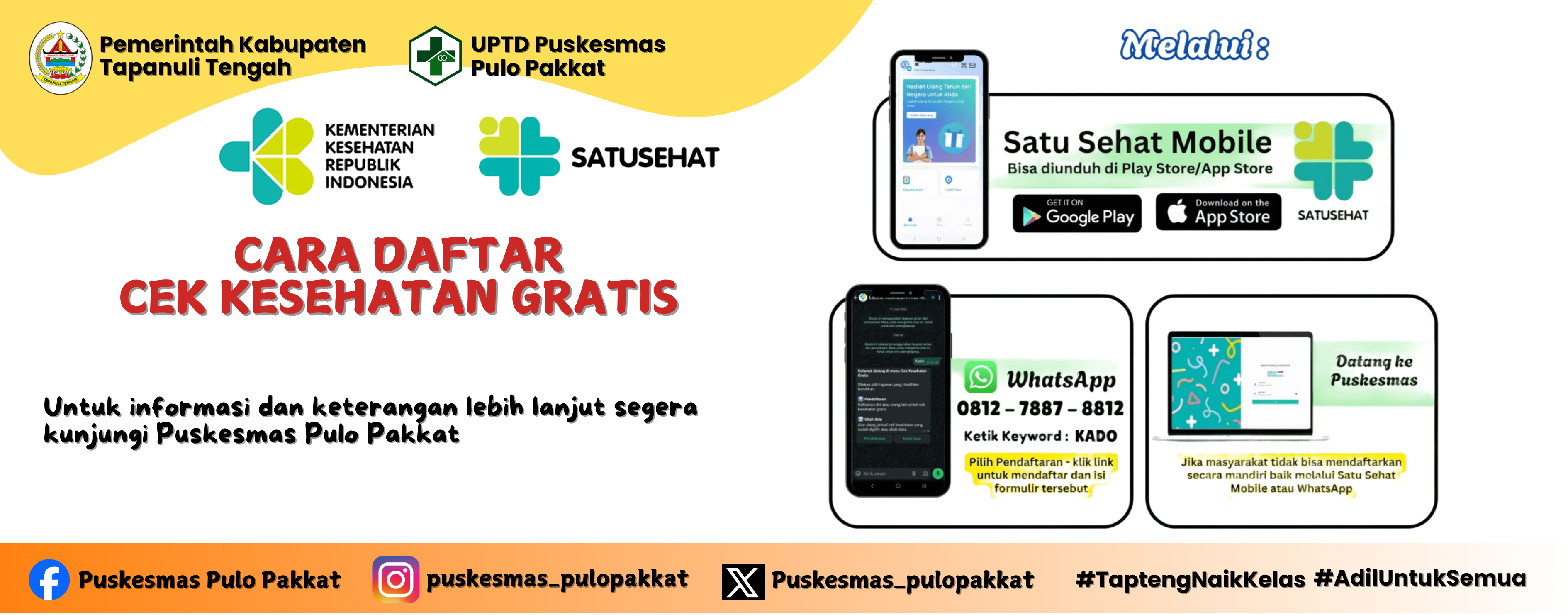 Silahkan berkunjung ke Puskesmas Pulo Pakkat, sesuai dengan lokasi, alamat, telepon dan email yang ada.
